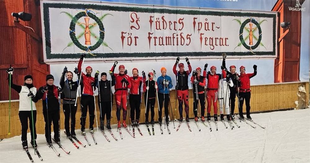 Vi är ett glatt gäng skidåkare som tränar rullskidor och skidor tillsammans.